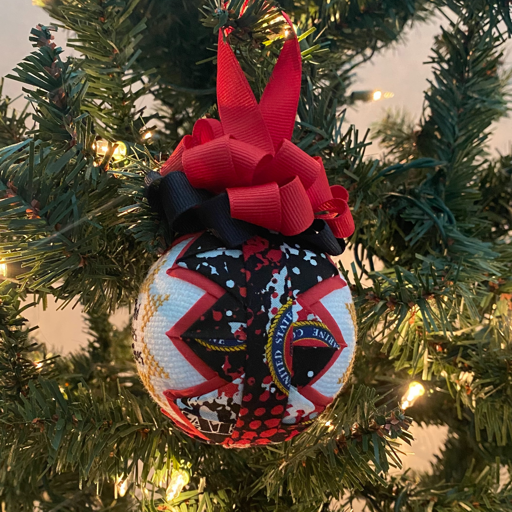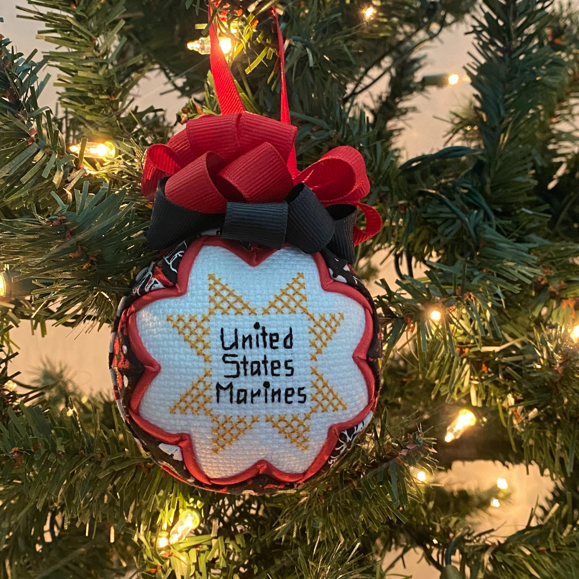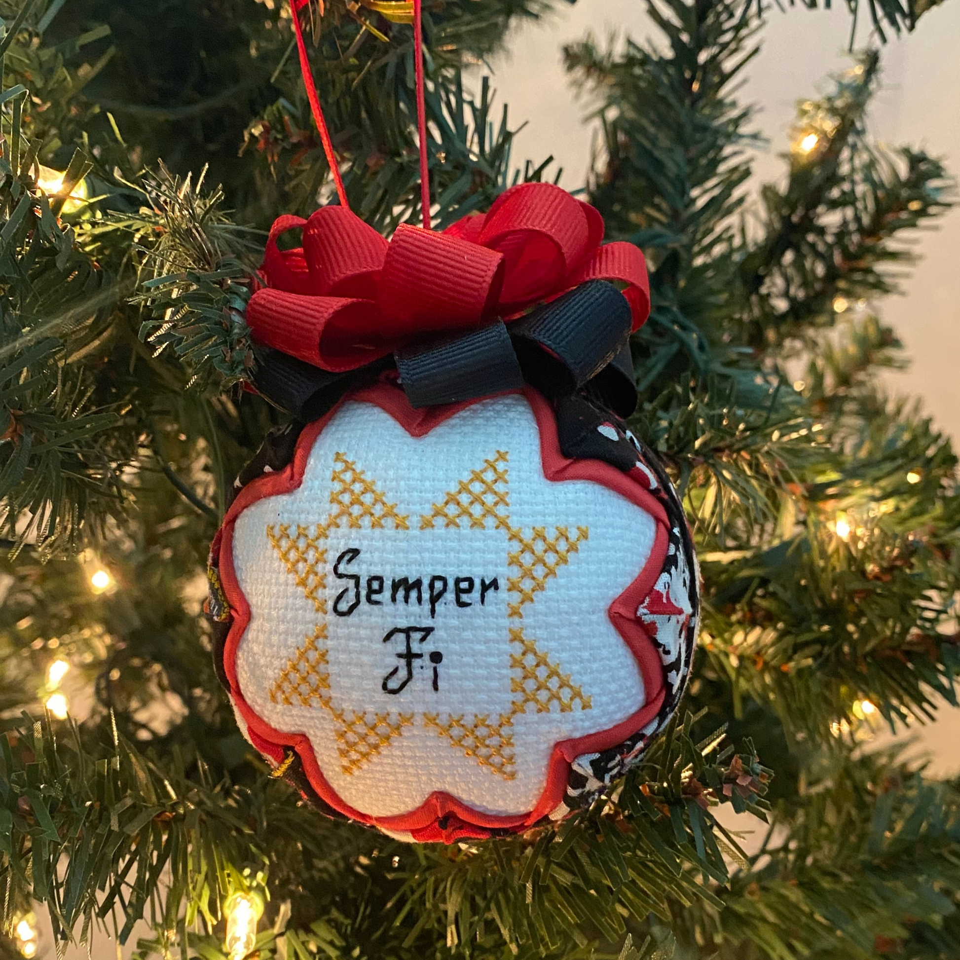 Decorate your tree with Marine pride! Our United States Marine Snow Globe Ornament is truly one-of-a-kind, hand-crafted with a 4" Styrofoam ball and hand-cross stitched "Semper Fi"! A perfect gift - to yourself or a fellow Marine - for showing your courage and dedication to the Corps. Oorah!